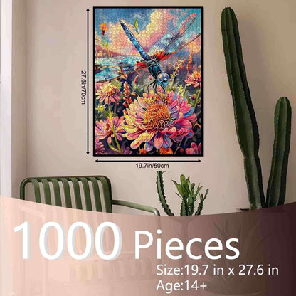 Dragonfly over Wild Blooms Jigsaw Puzzle
