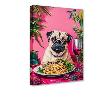 Elegant Pug Dining with Pasta Canvas Wall Art