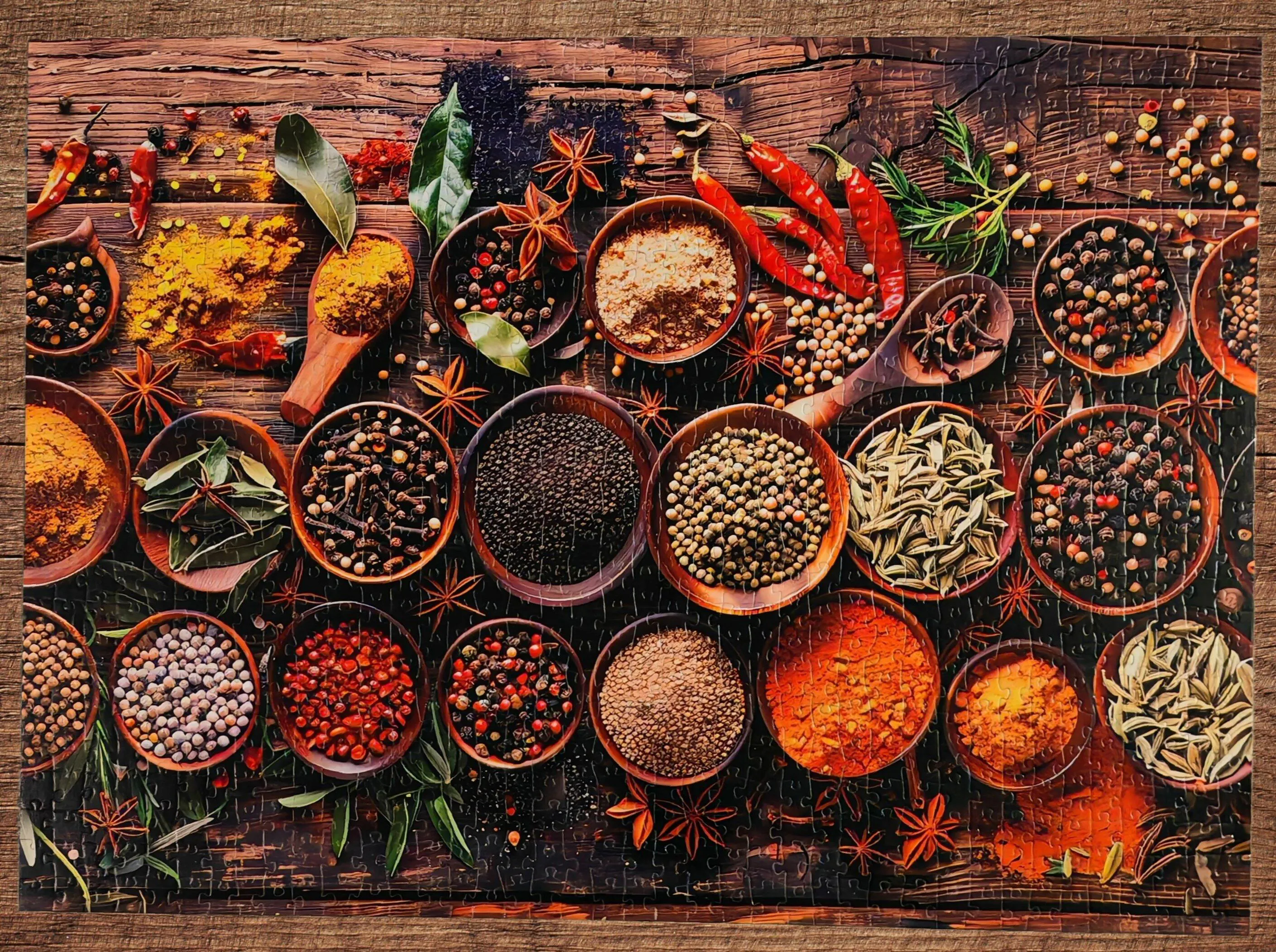 Explore a world of flavor with Exotic Spices Jigsaw Puzzles. Featuring a vibrant array of spices, herbs, and colorful powders, this puzzle brings the warmth and richness of global cuisine to your collection. Perfect for food enthusiasts and decor lovers.