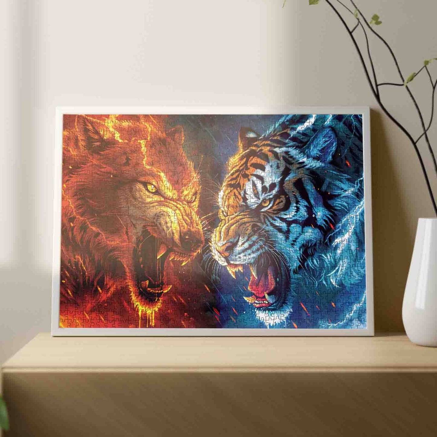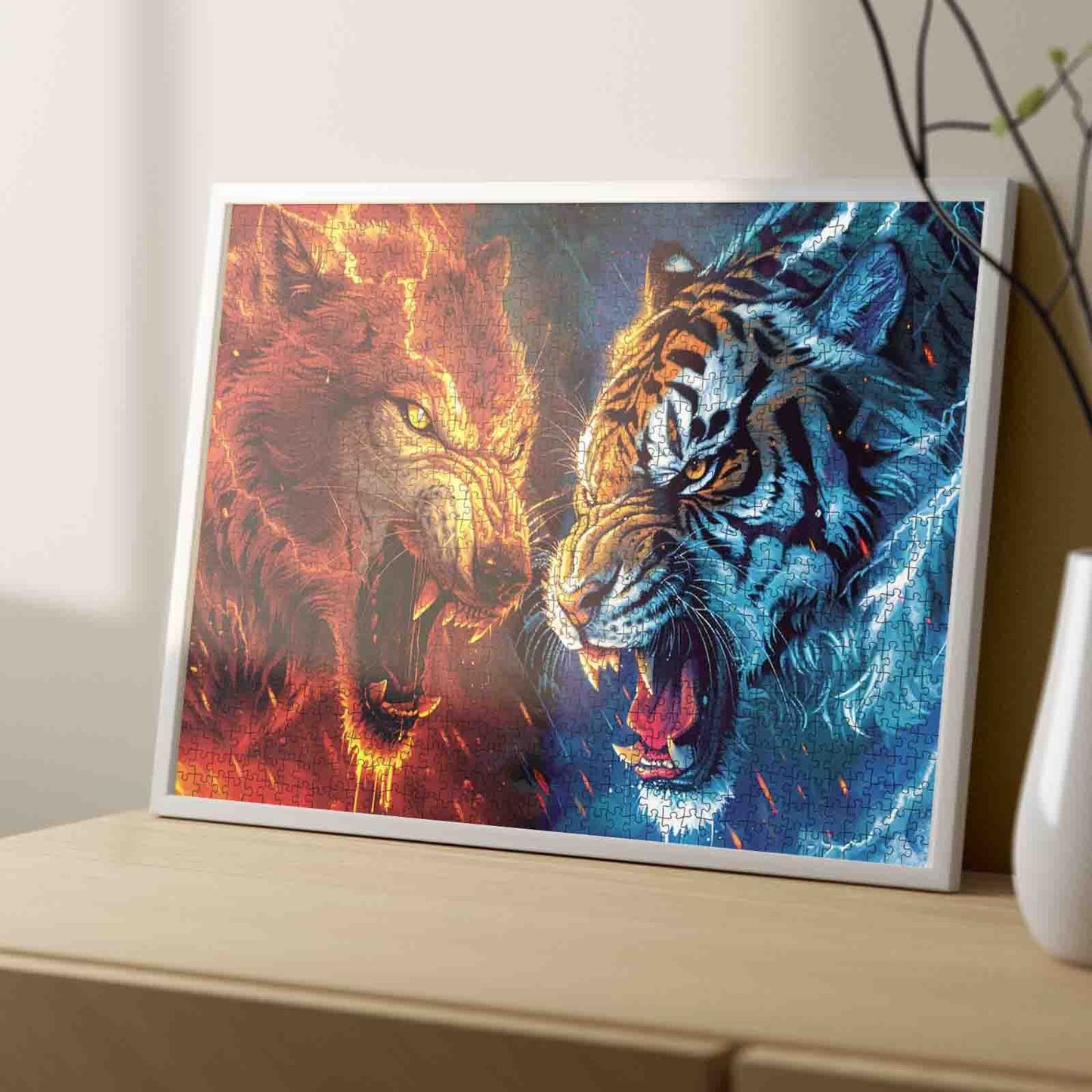 Fire and Ice Wolf and Tiger Jigsaw Puzzle