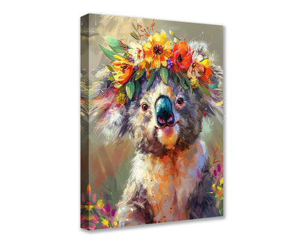 Meet the adorable koala adorned with a vibrant floral crown, radiating charm and nature’s beauty. The lively brushstrokes and intricate details bring life and warmth to your space. Perfect for nature lovers or anyone seeking unique decor that stands out.