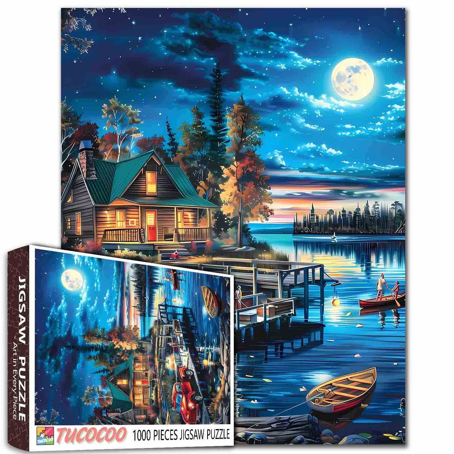 Lake Night Scenery Cabin Jigsaw Puzzle
