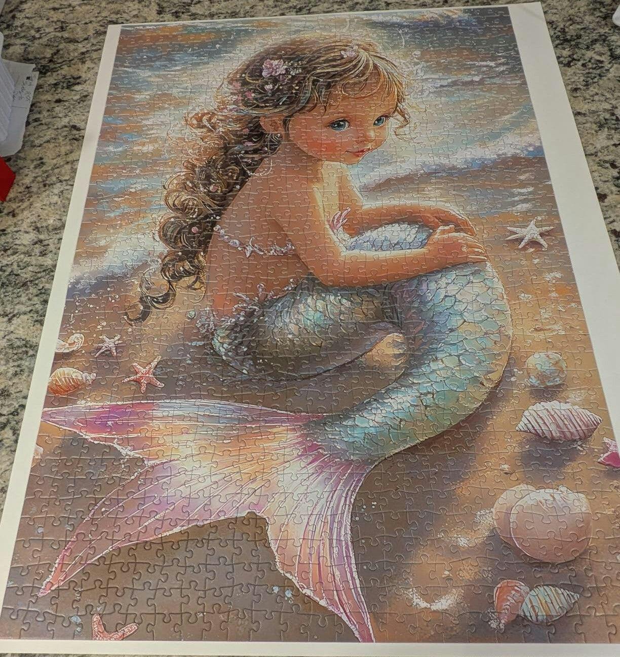 Dive into the magical underwater world with this adorable Little Mermaid Jigsaw Puzzle. Featuring a sweet little mermaid sitting by the shore surrounded by shimmering seashells and starfish, this 1000-piece puzzle captures the innocence and charm of childhood fantasy. With vibrant colors and intricate details, it offers a delightful challenge for puzzle enthusiasts of all ages. Made with premium materials, this puzzle ensures durability and a smooth assembling experience. A perfect gift or a relaxing activity to spark your imagination and bring fairy tales to life.