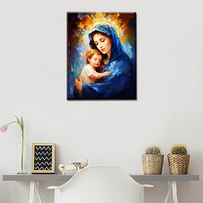 This Jesus paint by numbers kit features a beautiful depiction of the Virgin Mary holding baby Jesus. The painting captures the love and devotion of a mother for her child, making it a perfect addition to any home. It's a relaxing and rewarding activity that will allow you to create a stunning piece of art.
