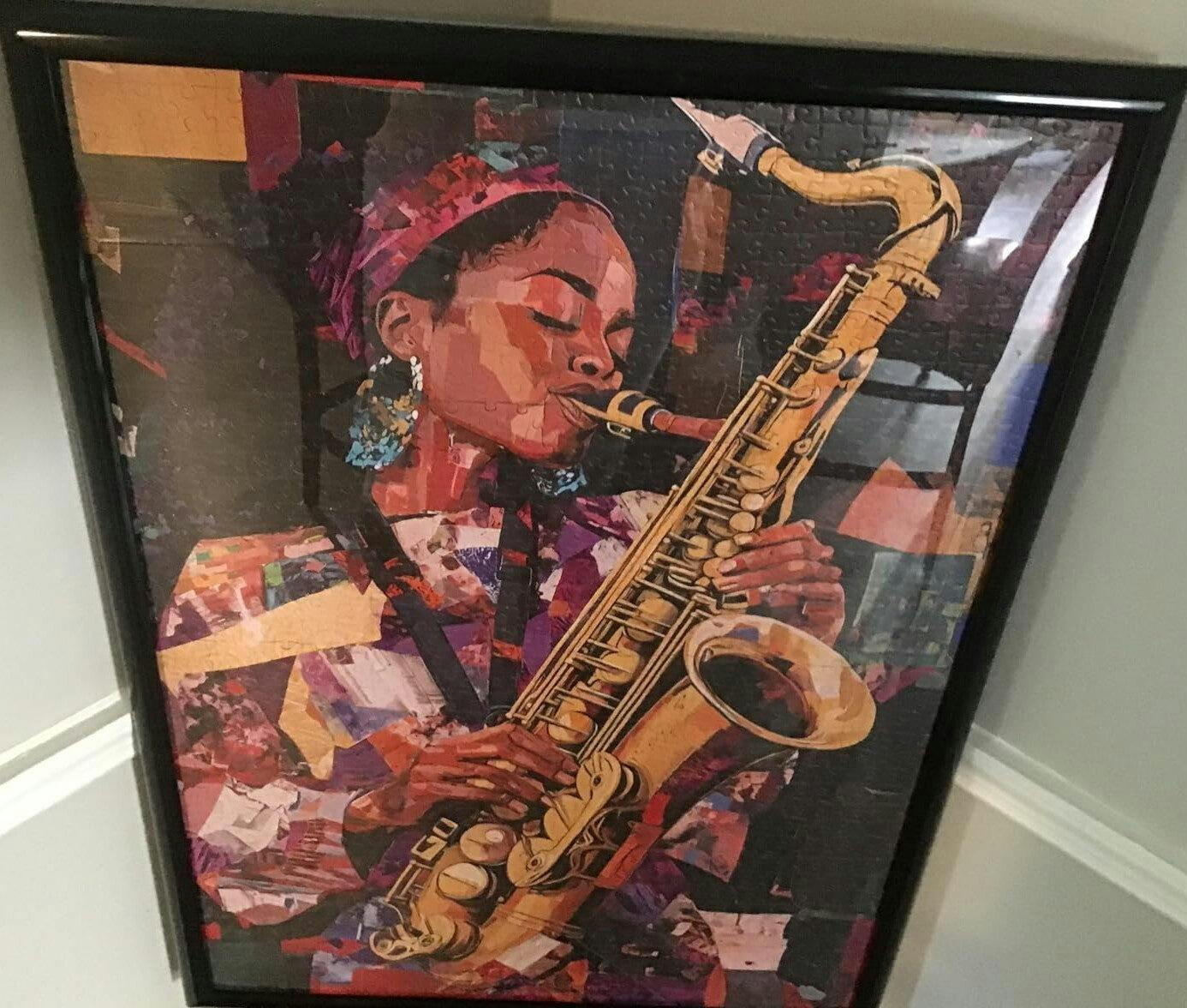 Feel the rhythm flow as a passionate saxophonist closes her eyes, lost in the deep melody of her music. This stunning puzzle captures the warmth of golden brass against a rich tapestry of colors, celebrating the power of jazz. Every piece brings you closer to the soulful energy of the scene, making it a mesmerizing challenge for music lovers and art enthusiasts alike.