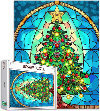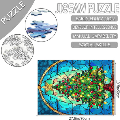 Stained Glass Style Xmas Tree Jigsaw Puzzles