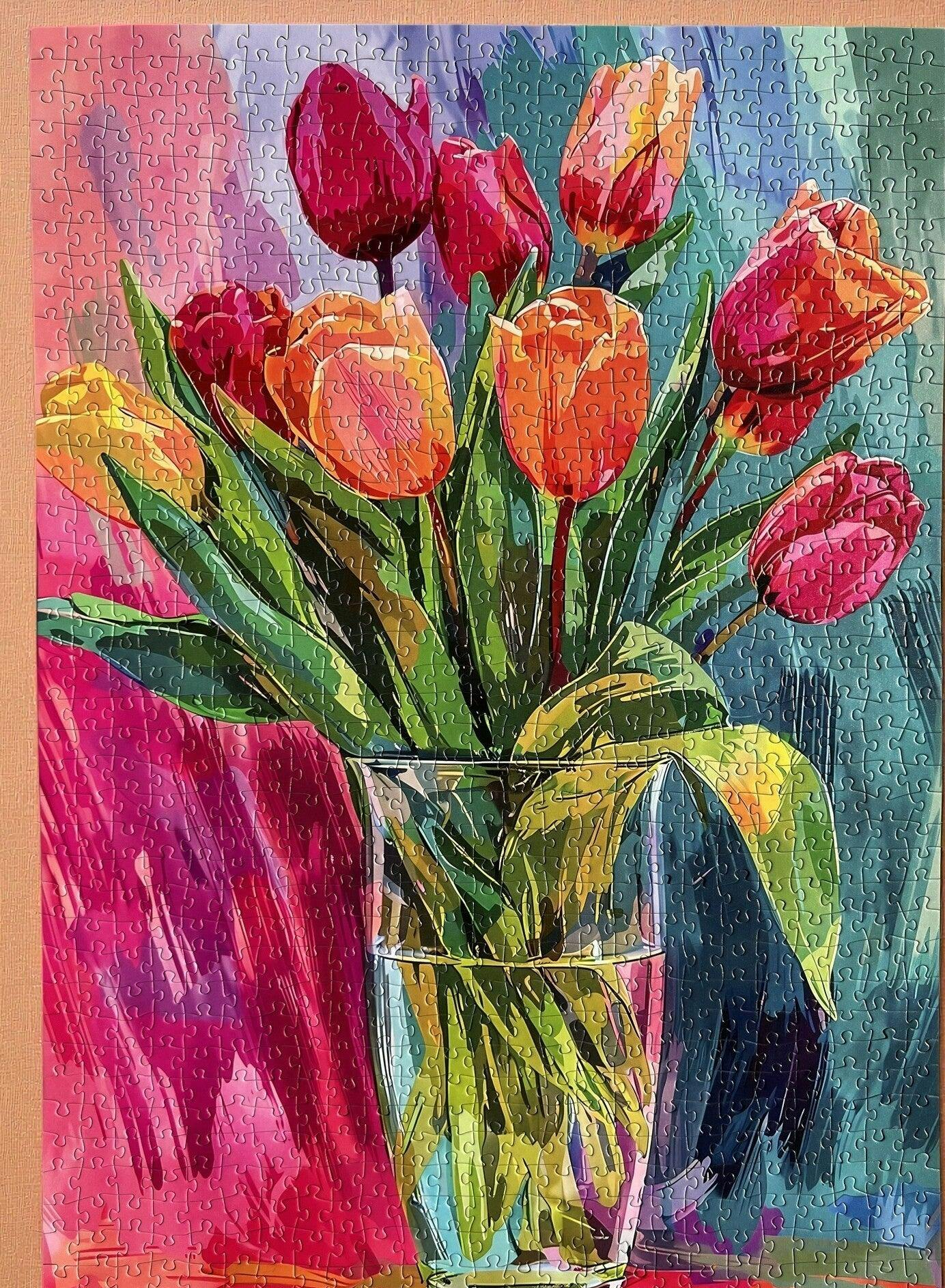 Step into a whimsical world where tulips dance under a kaleidoscope sky in our 'Vibrant Tulips' jigsaw puzzle. This 1000-piece set offers a visual feast of lush, colorful tulips, inviting you to piece together each petal and leaf with care. It's not just a puzzle, but a portal to spring's vibrant embrace.