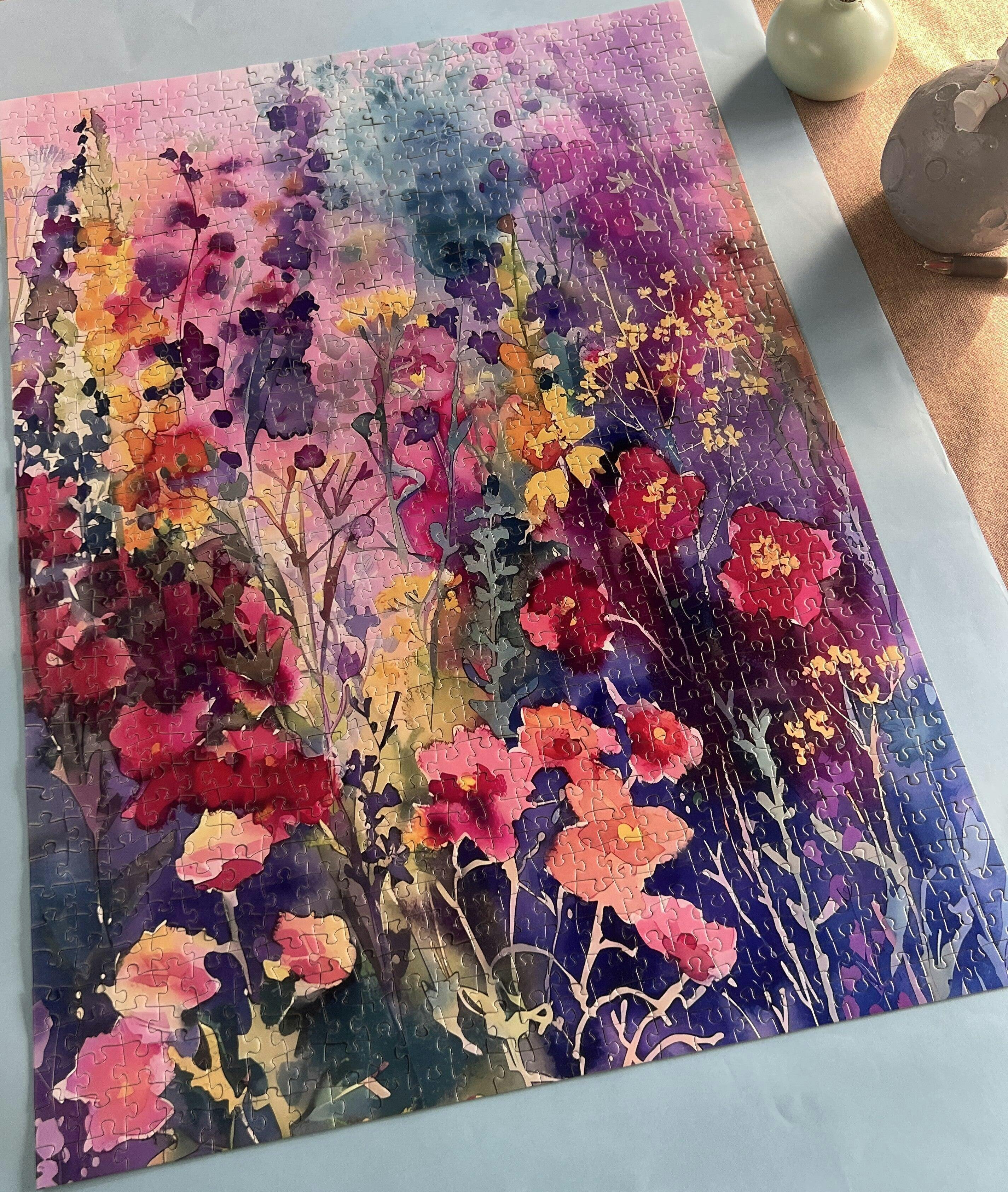 A dreamy watercolor garden bursts into life with every piece you place. Delicate blossoms in shades of red, violet, pink, and gold flow together across a soft, pastel sky. The design feels like a stroll through a spring meadow painted with emotion and light. Subtle gradients and fluid brushstrokes create a satisfying challenge for those who love both nature and artistic expression. As the image slowly forms, the floral chaos turns into tranquil harmony—a perfect escape into color and creativity.